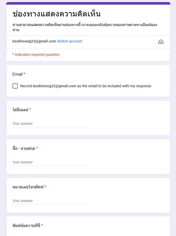 ข้อมูลการติดต่อและช่องทางการถามตอบ/รับฟังความคิดเห็น
