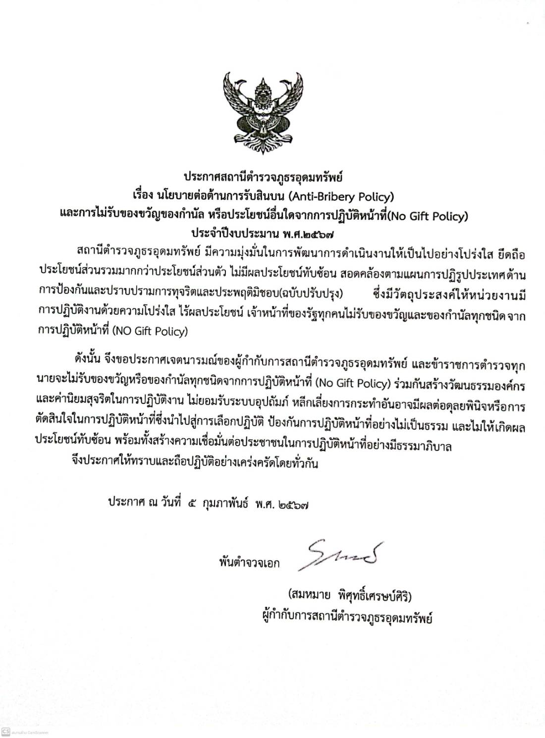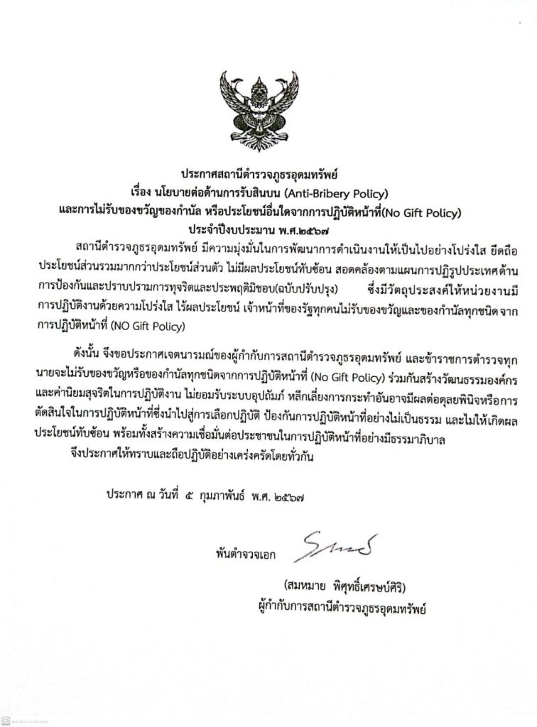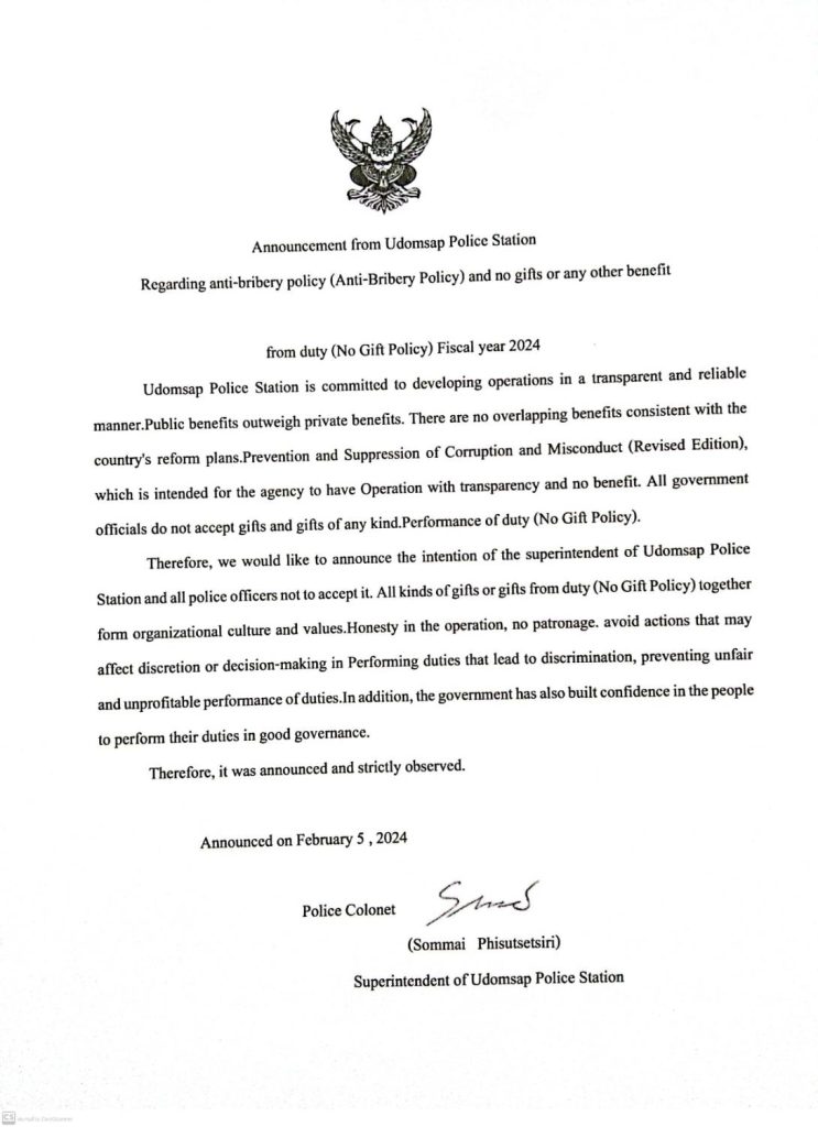นโยบายไม่รับของขวัญของกำนัน จากการปฏิบัติหน้าที่