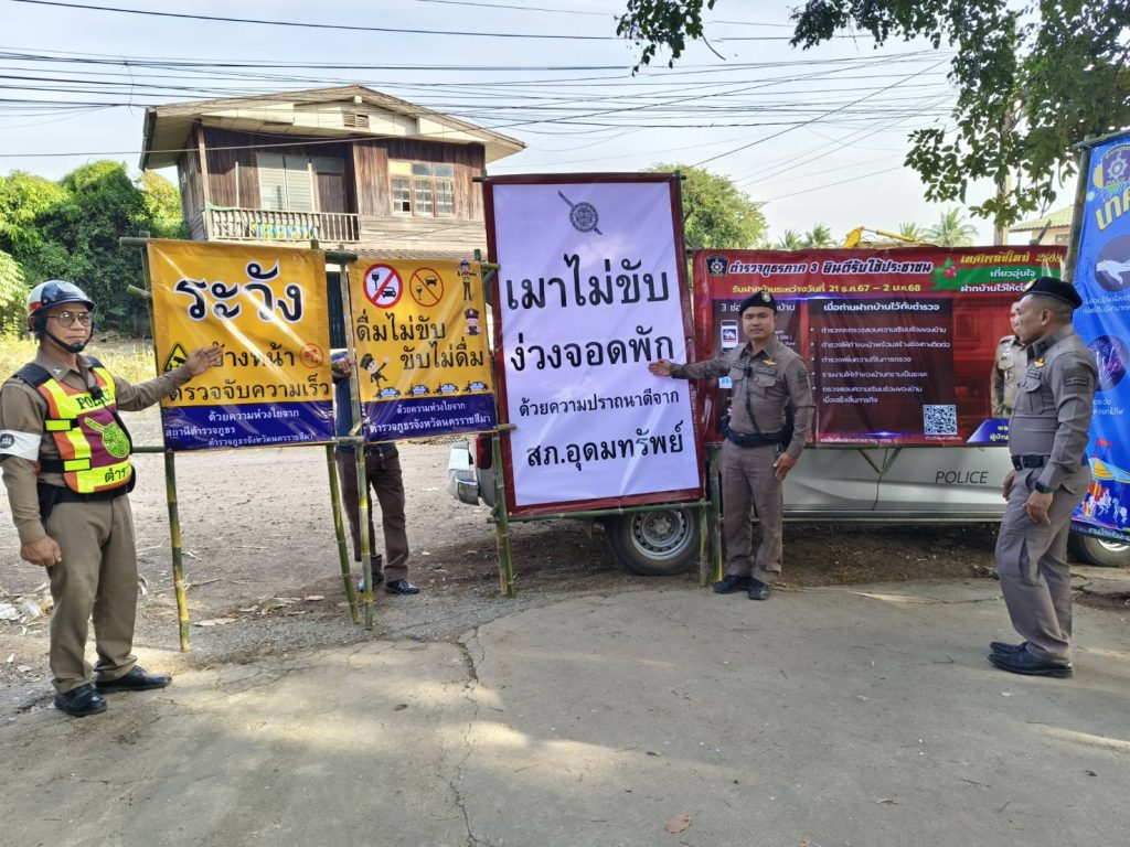 สภ.อุดมทรัพย์ จัดทำป้ายประชาสัมพันธ์แจ้งเตือนลดอุบัติเหตุ ในช่วงเทศกาลปีใหม่ 2568 เพื่อติดตั้งตามจุดต่างๆ ในเขตพื้นที่ สภ.อุดมทรัพย์ เรียบร้อย