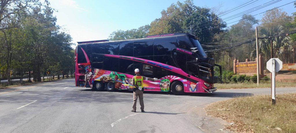 วันที่ 16 ธ.ค.67 สายตรวจจราจร /จยย. อำนวยความสะดวกการจราจร ขบวนรถทัวร์คณะครู นักเรียน โรงเรียนละหานทราย มาทัศนศึกษาที่ศุนย์วิจัยสะแกราช