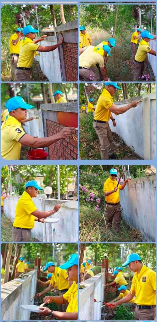 วันที่ 18 ธ.ค.2567 เวลา 10.00 น. งานอำนวยการพร้อมข้าราชการตำรวจ จัดกิจกรรมจิตอาสาปรับภูมิทัศน์ ทาสีกำแพง ทำความสะอาดรอบๆสถานีตำรวจ