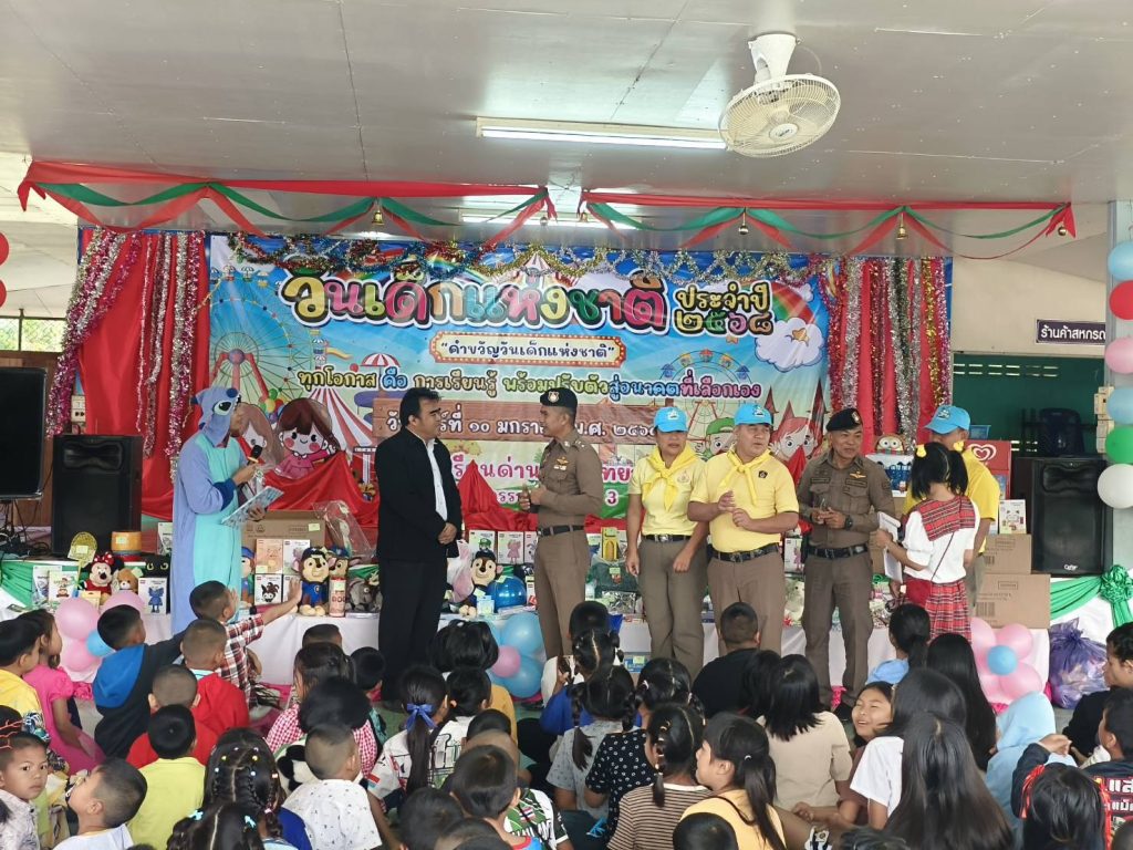 วันที่ 10-11 ม.ค.2568 งานอำนวยการนำตำรวจชุดจิตอาสาแจกขนมของขวัญและไอศครีม แก่โดรงเรียนในพื้นที่ และร่วมกิจกรรมวันเด็ก ณ ลานสนามกีฬา อ.บ.ต.อุดมทรัพย์