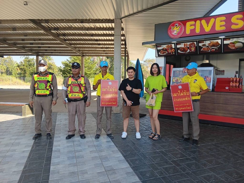 วันที่ 1 ม.ค. 2568 งานอำนวยการนำตำรวจชุดจิตอาสา ออกประชาสัมพันธ์ รณรงค์ “เมาไม่ขับ ง่วงจอดพัก กลับบ้านปลอดภัย” เพื่อความปลอดภัยขณะเดินทางกลับช่วงเทศกาลปีใหม่ ตามปั๊มน้ำมันในพื้นที่
