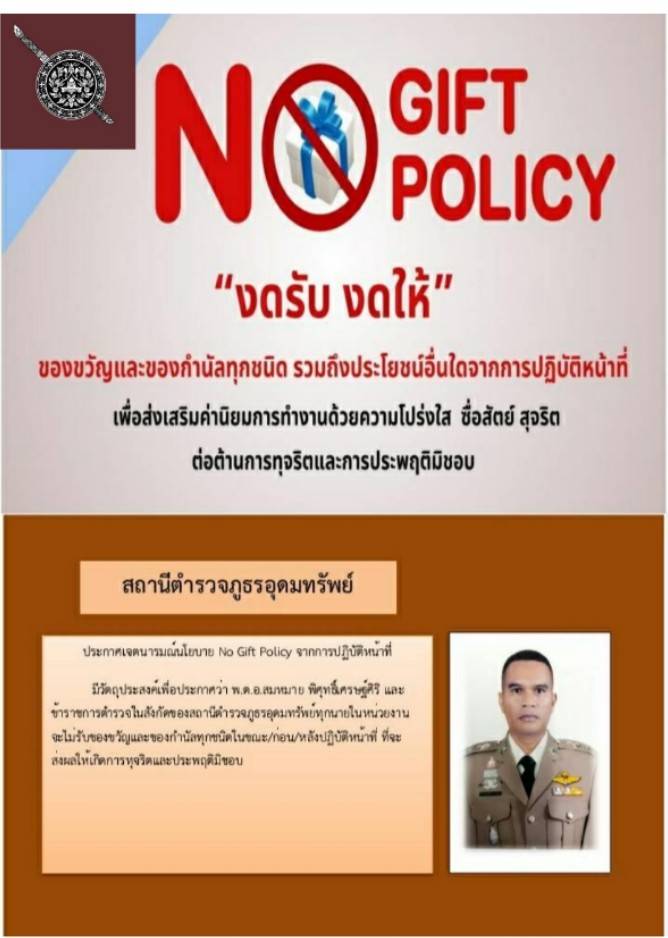 O18 ประกาศนโยบายต่อต้านการรับสินบน (Anti-Bribery Policy) และนโยบายไม่รับของขวัญและของกำนัลทุกชนิด (No Gift Policy) จากการปฏิบัติหน้าที่